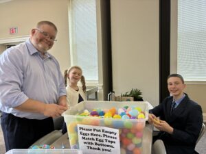 After the education hour, we enjoyed lunch together and stuffed 1000 eggs for the upcoming community Easter Egg Hunt, April 4th.